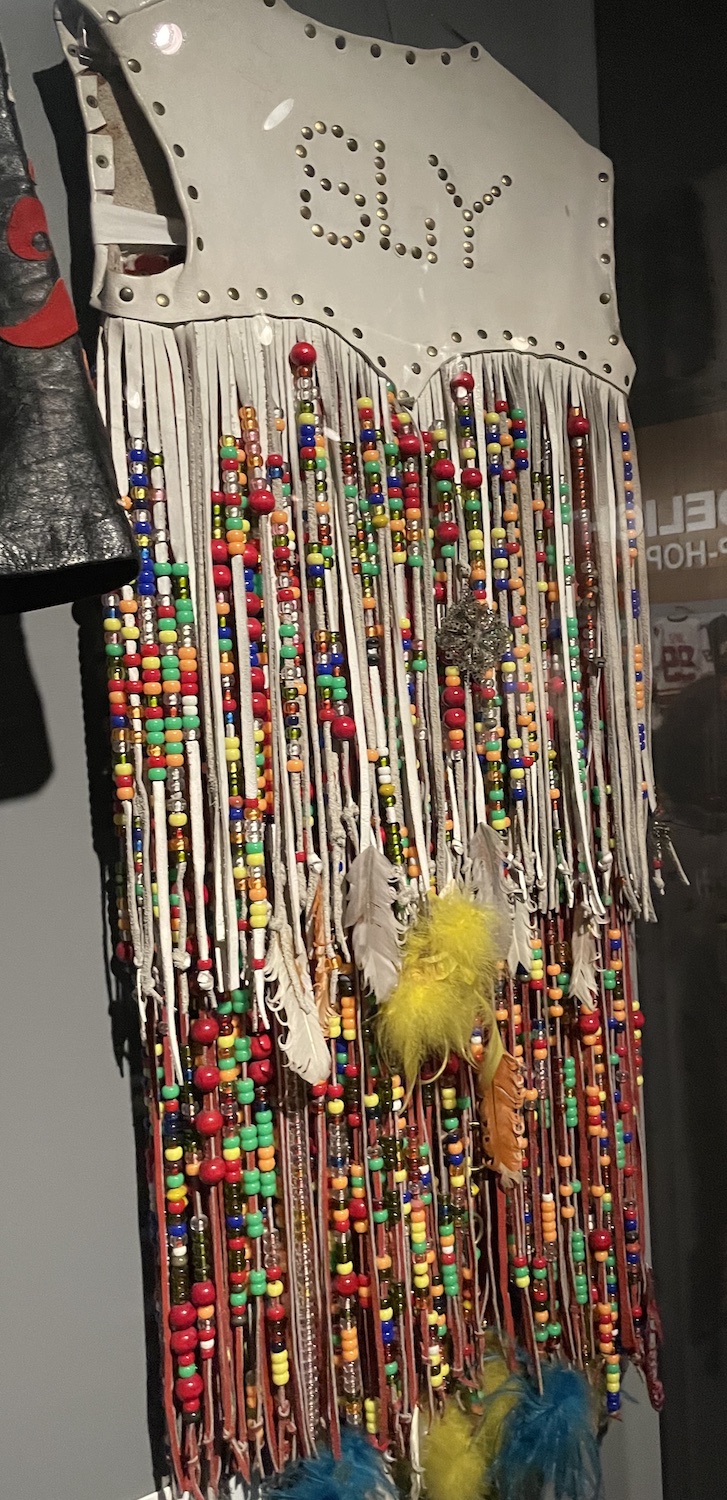 It was a lot of fun, this Rock Hall. Am I glad I finally made it there? Sure am. But for all of the eye-popping stuff we saw, there was one moment during our self-guided tour that, for me anyway, stood out, best summing up the spirit of rock and roll more than any of the artifacts themselves. While most of the displays are behind glass, in order to ensure that we rock fans keep our hands to ourselves and that no one takes home a souvenir Elton John spangle, some are open-air. You could practically touch the goodies.