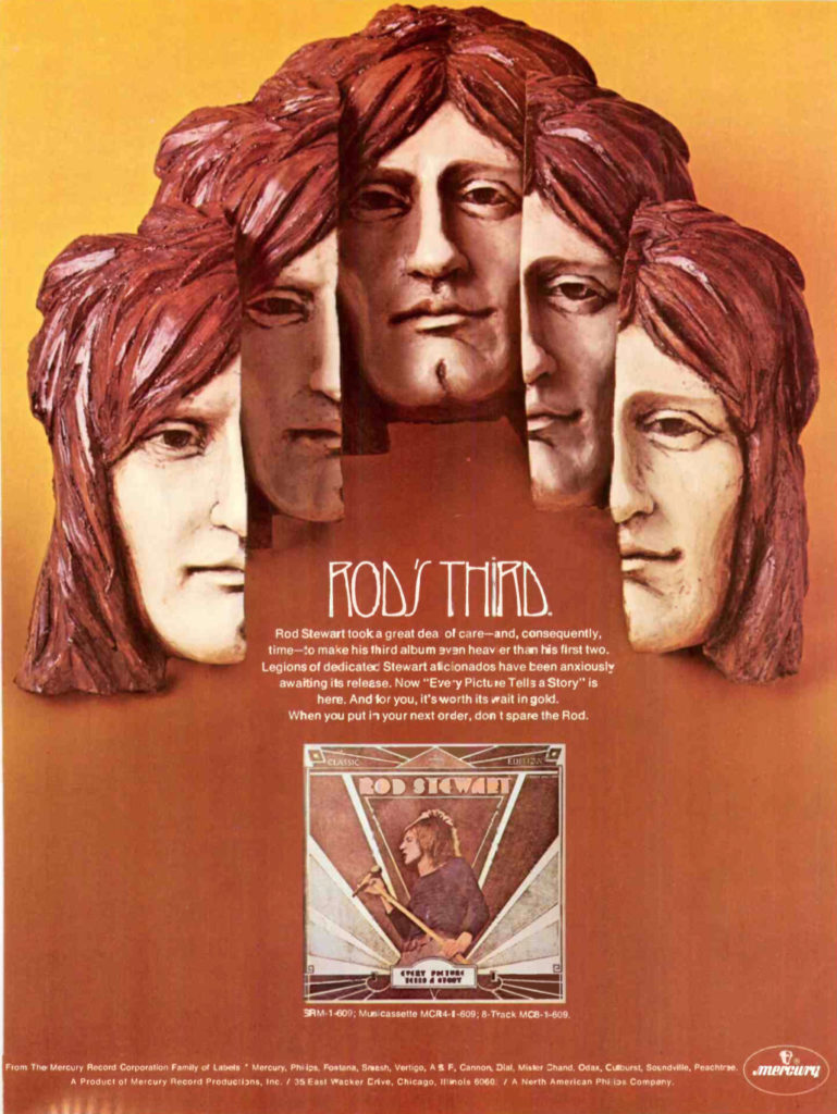 Stewart’s record label and management thought so little of the track it was relegated to the B-side of the album’s first 45 rpm single release in summer 1971, an excellent version of Tim Hardin’s “Reason to Believe” that failed to excite the airwaves and peaked at #62 in Billboard. A few AM radio DJs, including WMMS’ Murray Saul in Cleveland, liked the B-side better, and gave it some spins, lighting the fire that led Mercury Records to promote “Maggie May” on its own. It hit the top of the U.S. charts and stayed there for over a month. (“Reason to Believe” became a genuine hit later, when Stewart’s live MTV Unplugged version emerged in 1993.) Every Picture Tells a Story and “Maggie May” smashed the pop charts in Canada, England, Spain, Scandinavia, Italy, Japan and Australia, laying the groundwork for Stewart’s worldwide tours of the future.