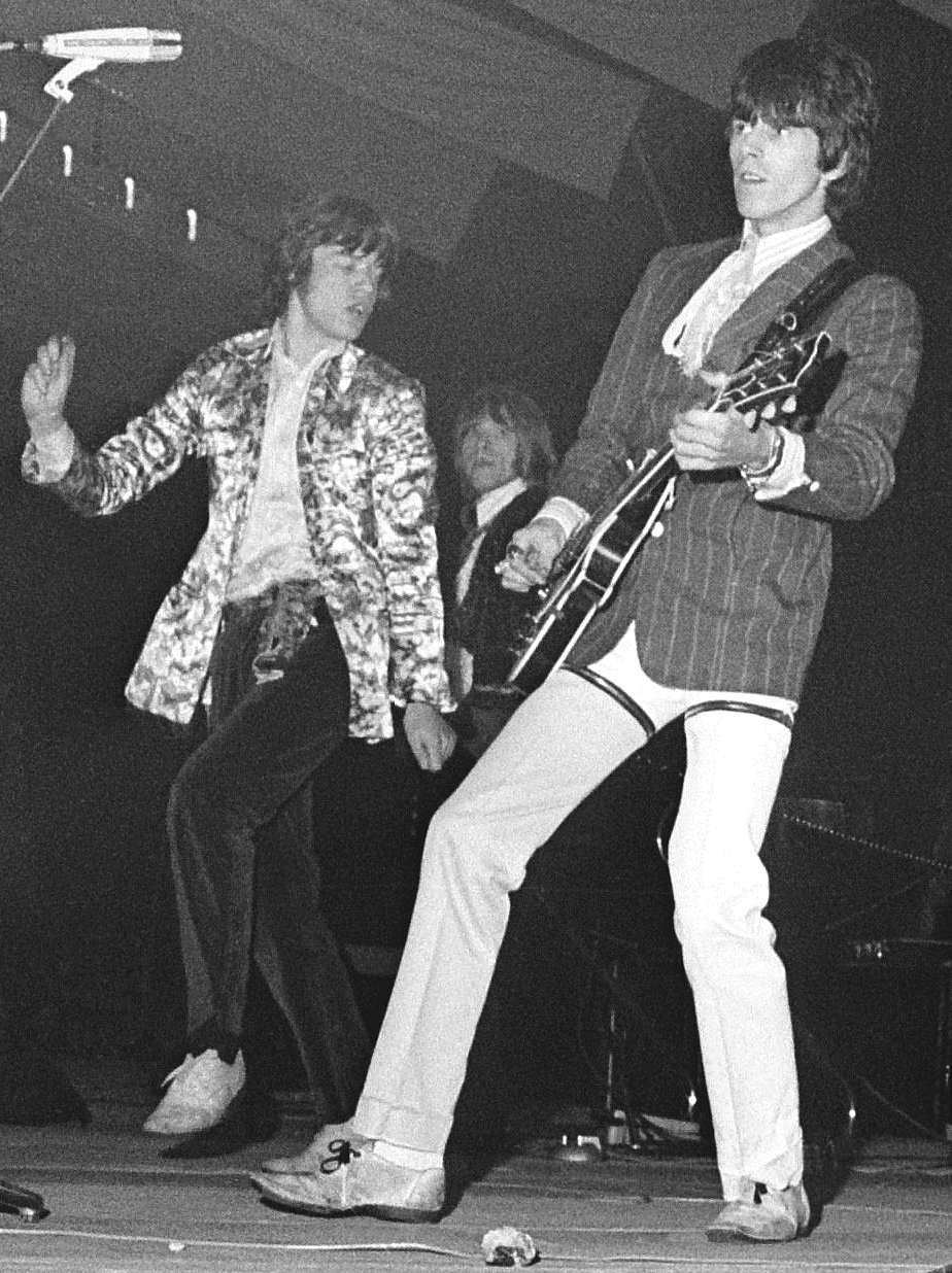 Mick Jagger and Keith Richards (with Brian Jones in back, April 1967 (Photo from Wikipedia, public domain)