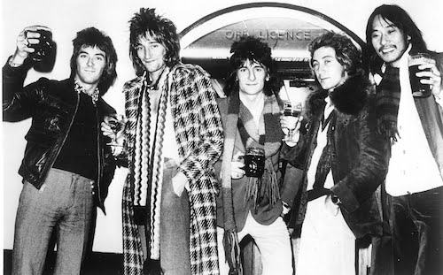Faces publicity photo from the mid-’70s. Left to right: Ian McLagan, Rod Stewart, Ronnie Wood, Kenney Jones, Tetsu Yamauchi
