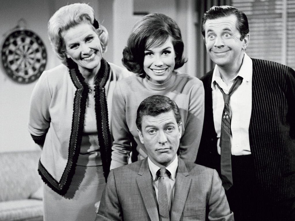 Rose Marie, Mary Tyler Moore and Morey Amsterdam with Dick Van Dyke