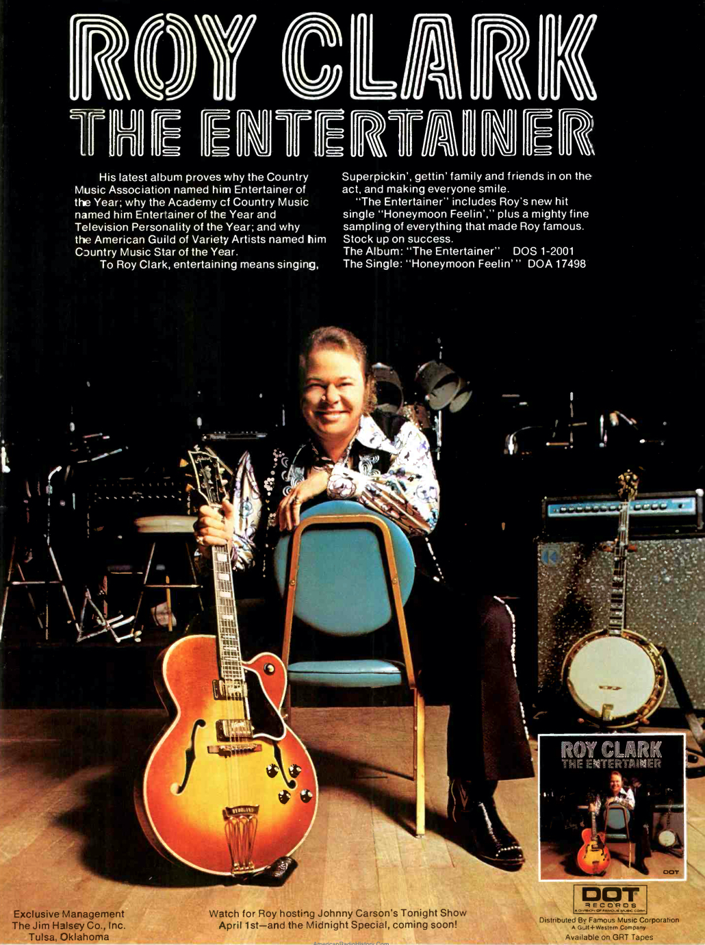 Throughout the ’60s, Clark recorded several albums, toured constantly and appeared on TV variety shows from Carson to Mike Douglas to Flip Wilson. He appeared on The Beverly Hillbillies as both Cousin Roy and Roy’s mother.