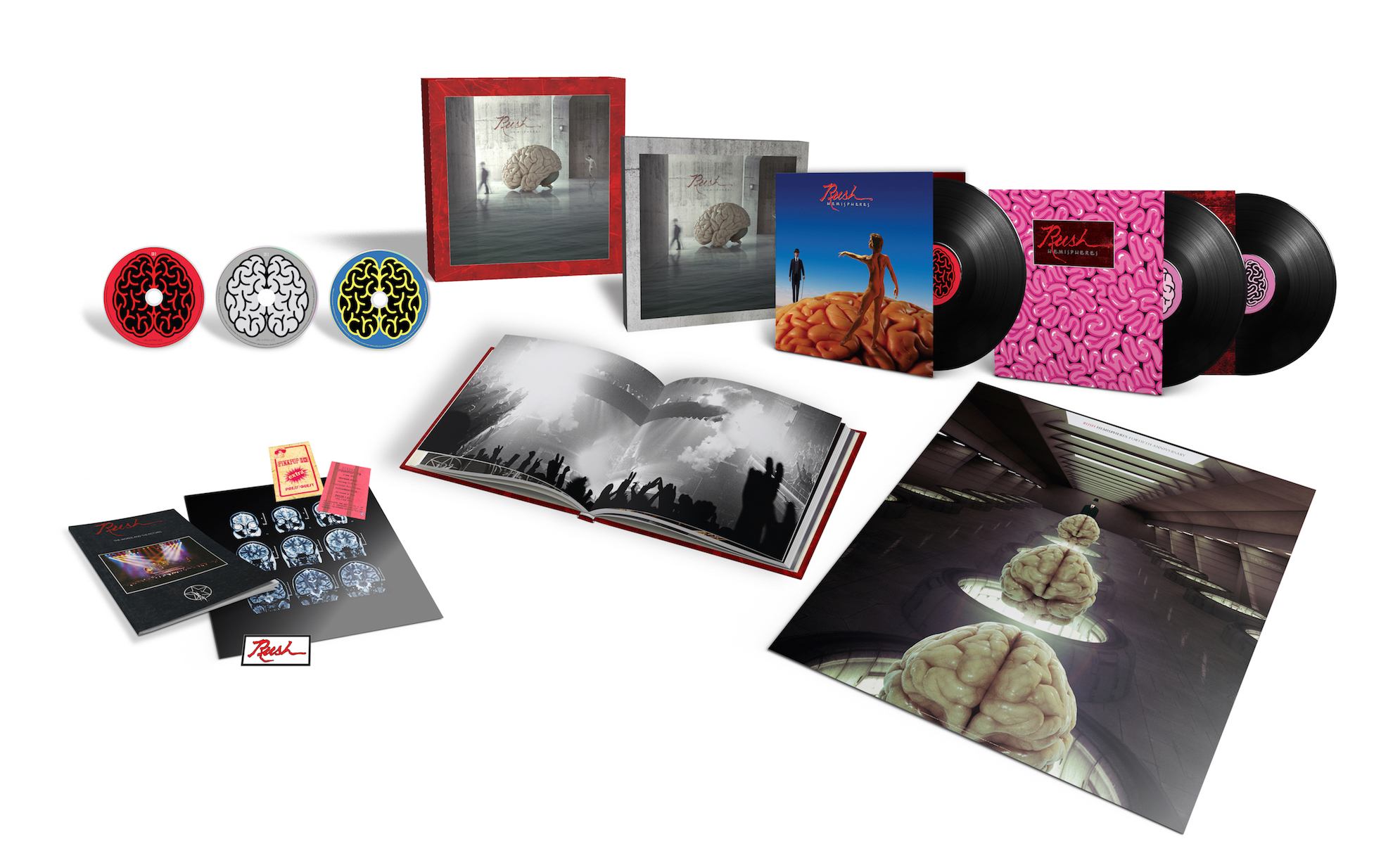 The Super Deluxe Edition of Hemispheres—40th Anniversary will also include several exclusive items, including a 40-page hardcover book with unreleased photos and new artwork by original album designer Hugh Syme; an extensive, 11,000+-word essay by Rob Bowman; The Words & the Pictures, a replica of the band’s rare 1979 U.K. tour program; a 24×24-inch wall poster of the newly created Syme art; a Pinkpop Festival replica ticket; a Pinkpop Festival replica cloth VIP sticky pass; and a replica 1978 “Rush” Hemispheres iron-on patch.