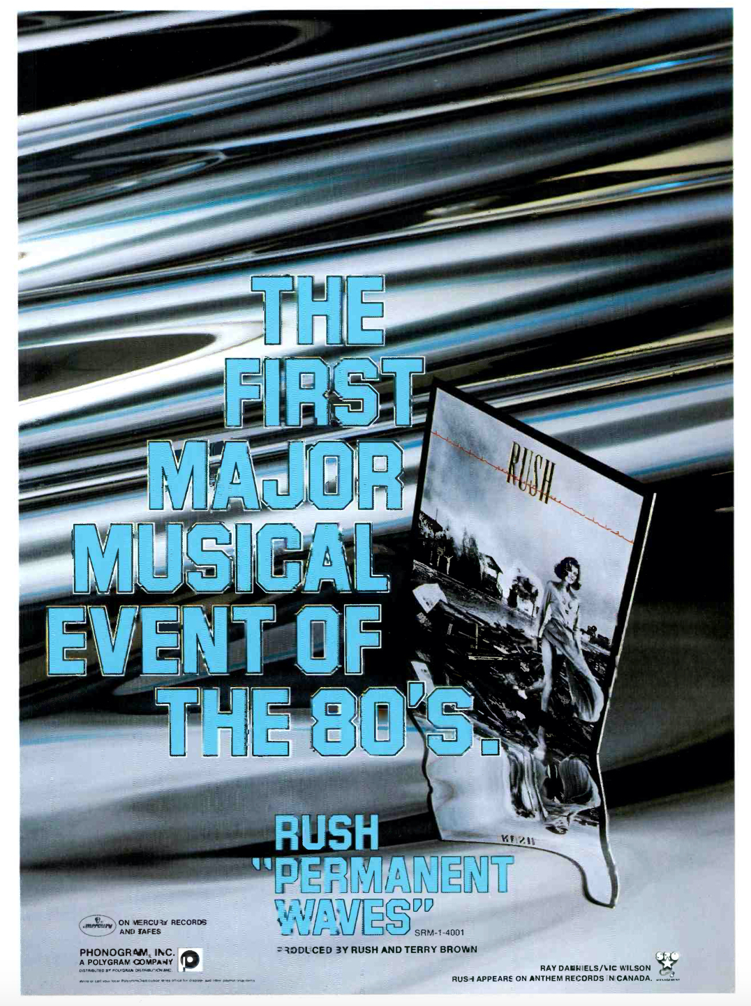 Released on January 14, 1980, Permanent Waves provided a quantum leap for Rush on the album charts Stateside, where it rocketed all the way up to #4 (compared to the mere #47 placing that their previous album, Hemispheres, reached), while pushing one digit higher in both Canada and the U.K. And its cover image remains one of Rush’s best, showing the hazardous effects of a hurricane, with Canadian model Paula Turnbull superimposed over it (with her skirt blowing up, to reenact the classic Marilyn Monroe pose from her 1954 film, The Seven Year Itch).