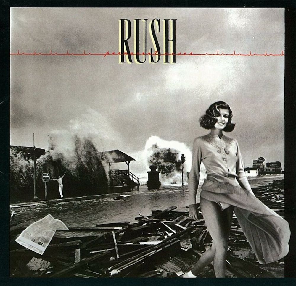 Released on January 14, 1980, Permanent Waves provided a quantum leap for Rush on the album charts Stateside, where it rocketed all the way up to #4 (compared to the mere #47 placing that their previous album, Hemispheres, reached), while pushing one digit higher in both Canada and the U.K. And its cover image remains one of Rush’s best, showing the hazardous effects of a hurricane, with Canadian model Paula Turnbull superimposed over it (with her skirt blowing up, to reenact the classic Marilyn Monroe pose from her 1954 film, The Seven Year Itch).