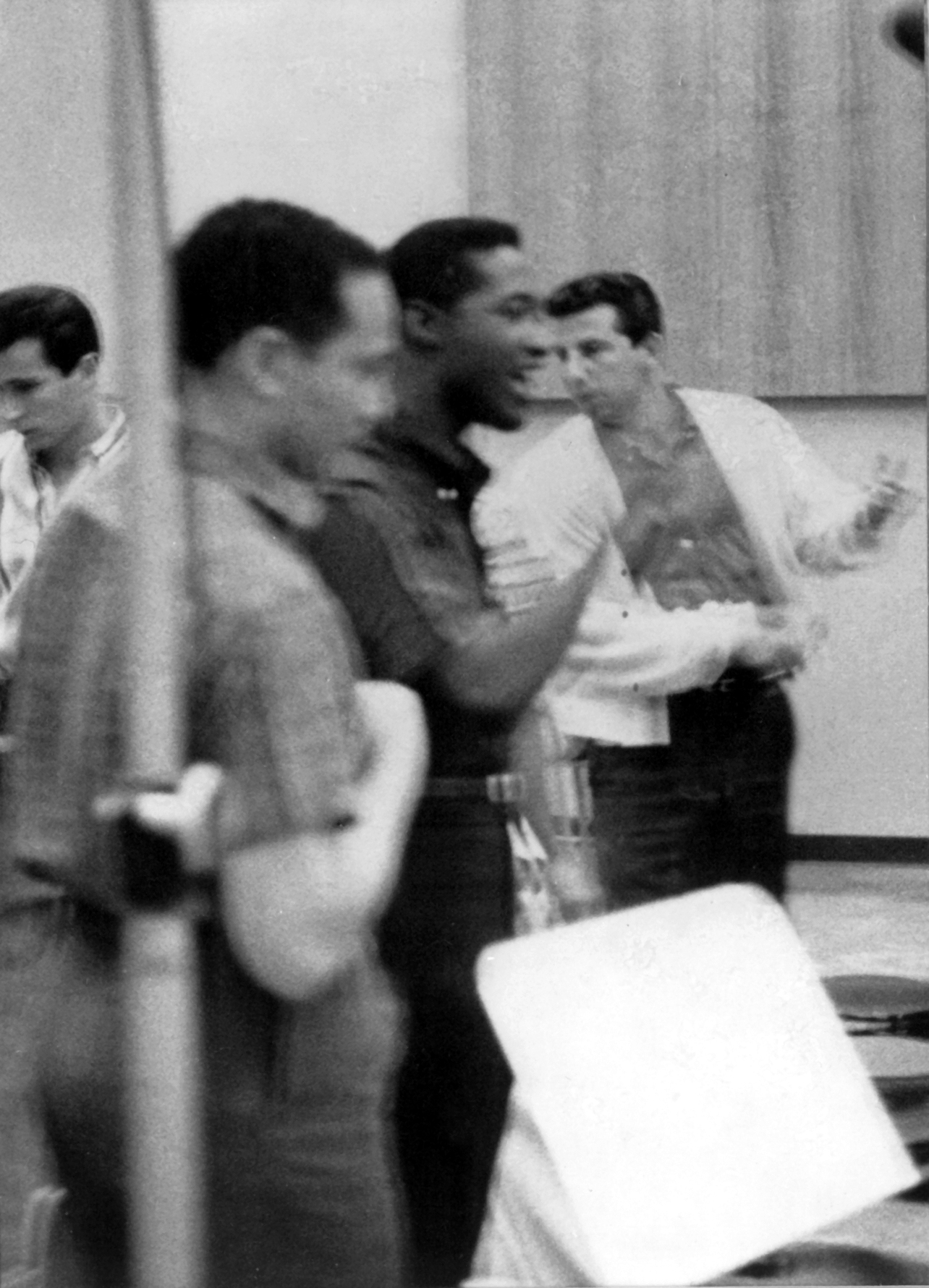 Pictured (L-R in a recording studio, Herb Alpert, Robert “Bumps” Blackwell, Sam Cooke, and Lou Adler (Photo: Lou Adler Archives; used with permission)
