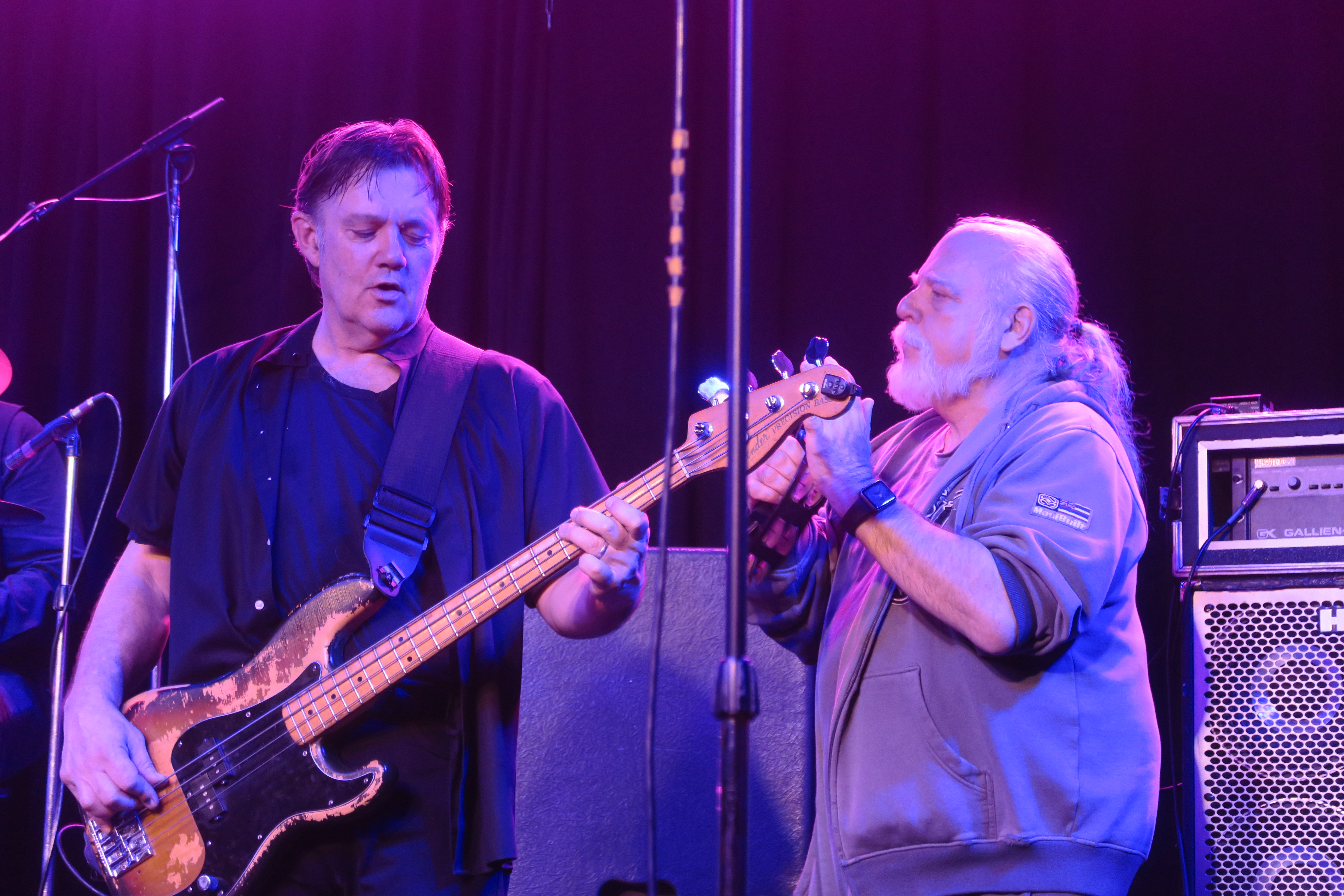 Mike Mesaros and producer Ed Stasium at the Coach House, Feb. 2019 (Photo; Thomas K. Arnold; used with permission)