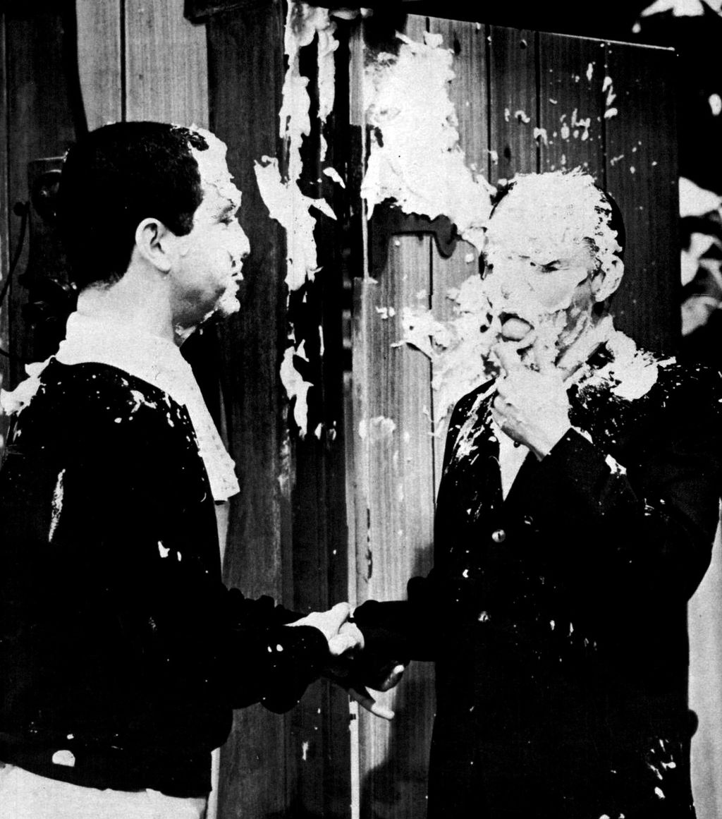 At some point during his early years on TV, Sales became known for being the hapless recipient of cream pies in the face (usually they were filled with shaving cream, which was easier to remove than actual cream). He estimated later that he’d been pied more than 20,000 times in his career: Celebrities, from Frank Sinatra and Jerry Lewis on down, took turns on the show tossing pies in Soupy’s face; sometimes they got one back in theirs.