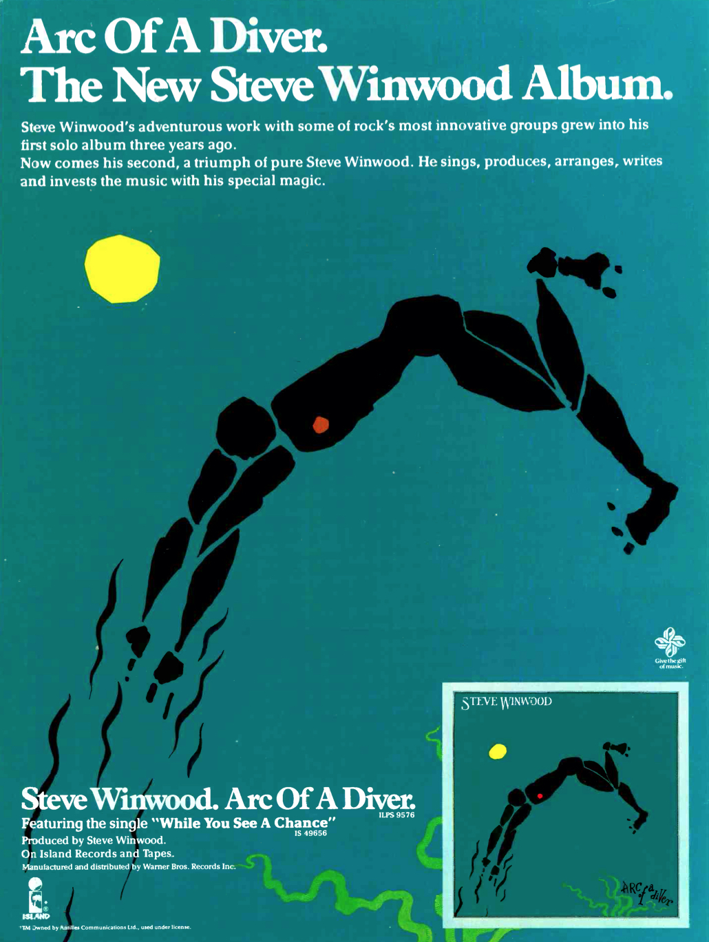“Because Arc was successful, it gives the impression I’ve been cruising along nicely since 1967,” Winwood told People magazine two years later. “That’s an illusion. I strove through the ’70s to get my head above water. It was a make-or-break situation. If it hadn’t been for Arc of a Diver, I might be a taxi driver.”Had that been true, it’s likely that he’d become a driver that could still boast a keen sense of direction.