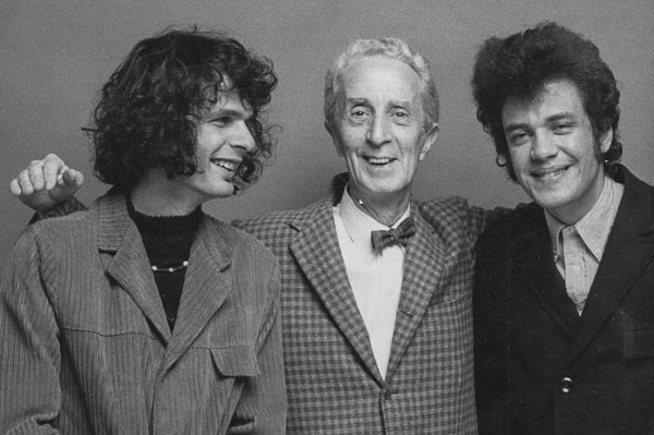 Kooper (left) and Bloomfield (right} flank artist Norman Rockwell, who painted the cover of their followup album, The Live Adventures of Mike Bloomfield and Al Kooper