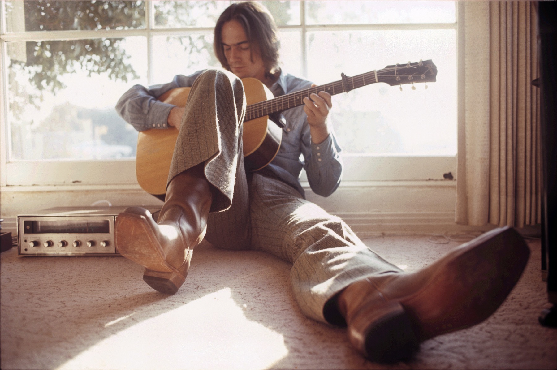 James Taylor at Peter Asher’s House, Dec. 1969. An hour later, the shot that ended up being on the Sweet Baby James album cover was taken (Photo © Henry Diltz; used with permission)
