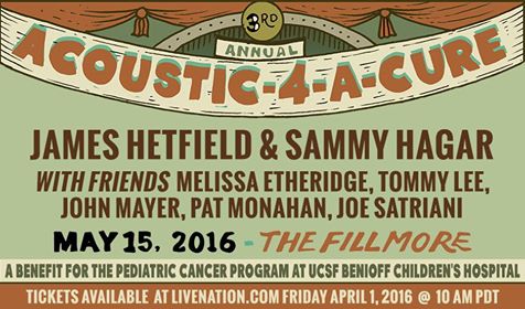 The 3rd annual concert, founded by Sammy Hagar and James Hetfield, benefits the Pediatric Cancer Program at UCSF Children’s Hospital. Featuring a great classic rock lineup…