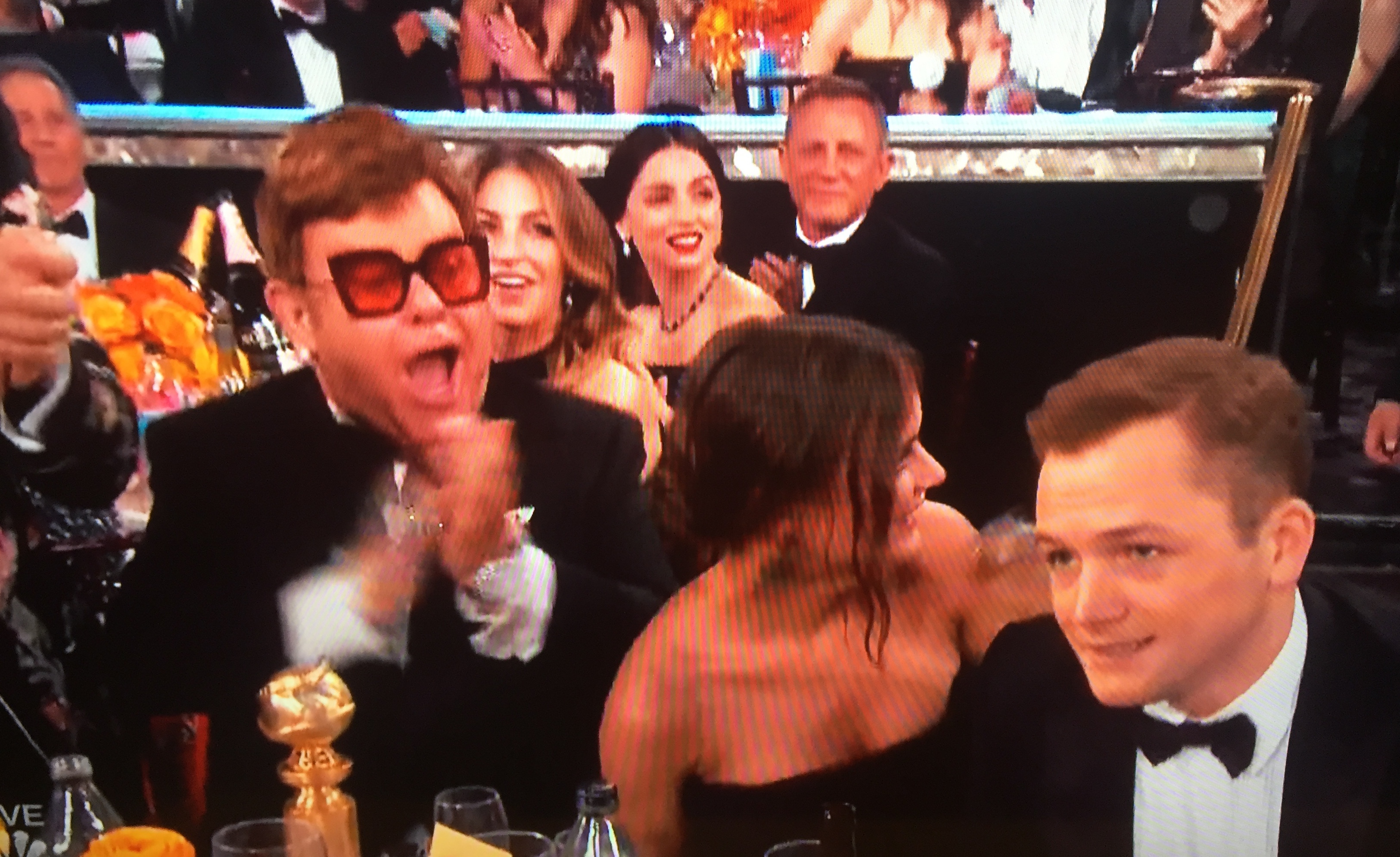 Elton John reacting to Taron Egerton’s Best Actor win at the Golden Globe Awards, Jan. 5, 2020