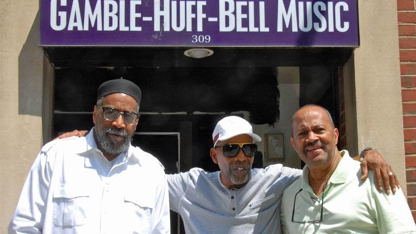 The Mighty Three outside their Sound of Philadelphia HQ