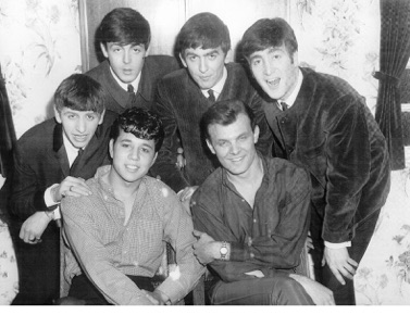 Tommy Roe (bottom right) with the Beatles and singer Chris Montez.