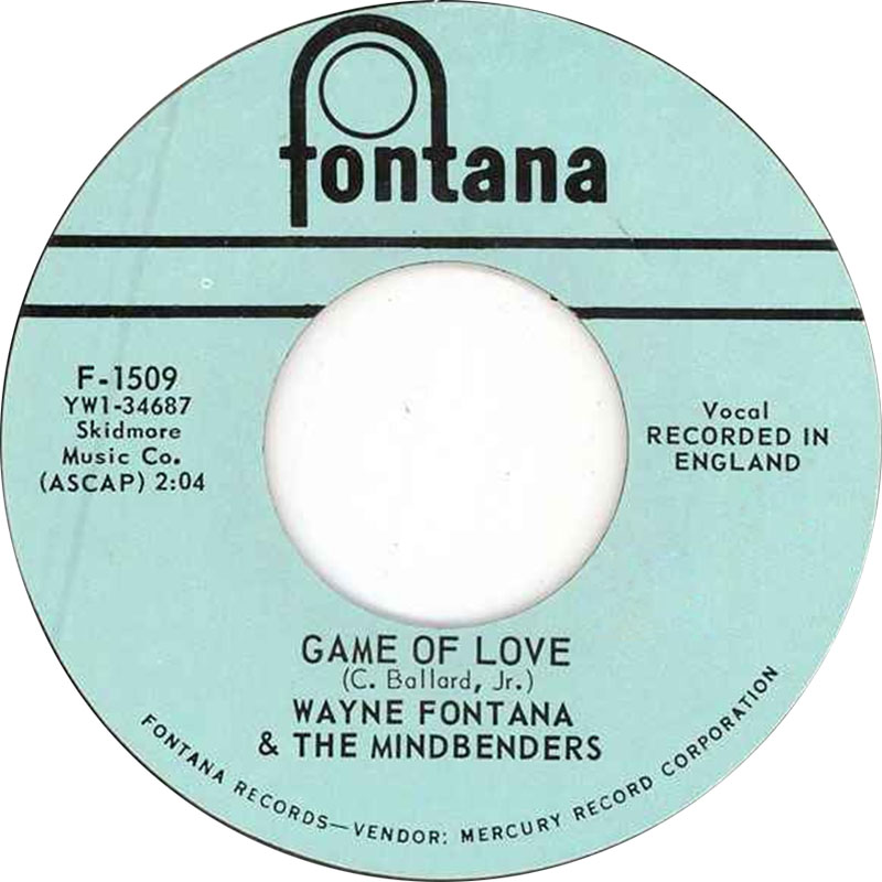 Signed to Fontana Records—it was, apparently, just a coincidence—Wayne Fontana and the Mindbenders first charted in the U.K. with a few R&B covers, including the Major Lance hit “Um, Um, Um, Um, Um, Um,” which peaked at #5 in Britain. Fontana Records’ U.S. branch picked up “Game of Love” for stateside distribution and sat back as it bounced to the top of the Billboard chart. The single debuted at #63 in the chart dated March 20, 1965, rose to #40 the following week, then #17, #7, #3 and, during the week of April 24, #1, replacing Freddie and the Dreamers’ “I’m Telling You Now.”