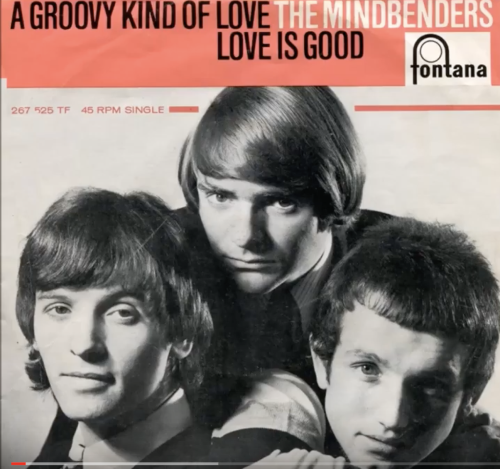 Remaining on Fontana Records, for their first single the Mindbenders recorded a song written by two teenagers who were relative newcomers to the music business, Carole Bayer Sager and Toni Wine. Based on a melody by the classical composer Muzio Clementi, “A Groovy Kind of Love” had been discovered by record executive Jack McGraw, who felt that Stewart and the others could do a nice job with it. The song, McGraw correctly reasoned, fit right in with the prevailing peace-and-love ethos of the day: “Anytime you want to, you can turn me onto, anything you want to, anytime at all,” sang Stewart, with backing vocals from Lang and Rothwell and a female chorus repeating the title of the song and the phrase “you and me.” The recording resonated with radio programmers, climbing to #2 in both the U.K. and America.