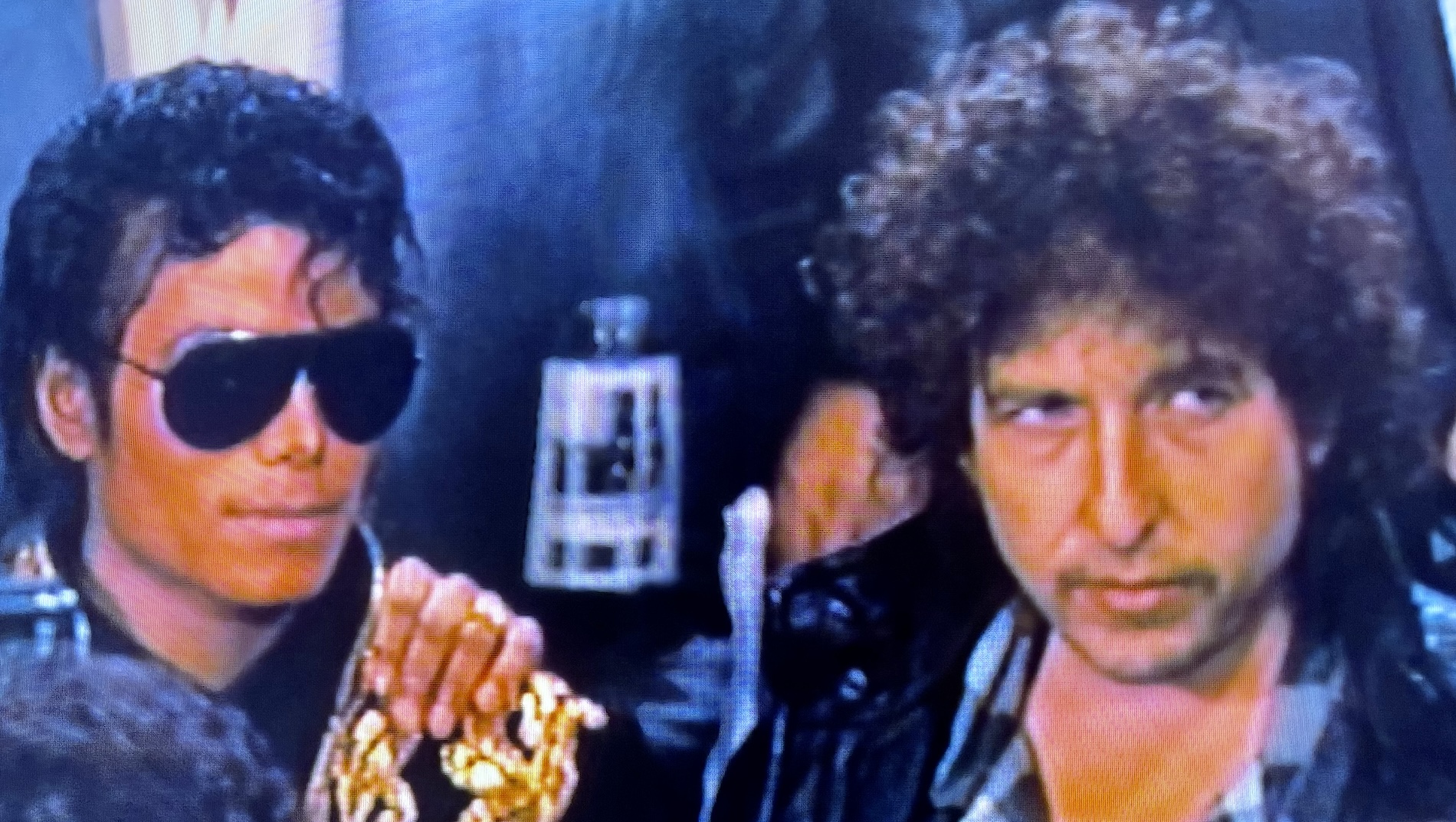 Michael Jackson and Bob Dylan during the “We Are the World” recording session.
