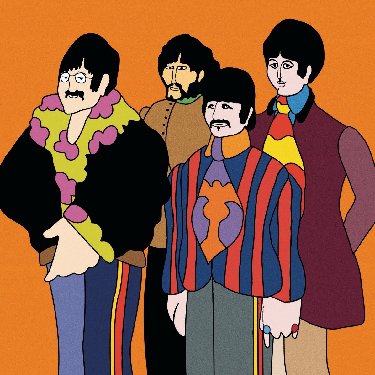 John Lennon, George Harrison, Ringo Starr and Paul McCartney as animated characters in Yellow Submarine